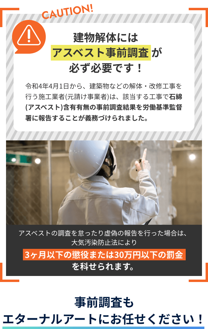 | 事業内容 | アスベスト除去工事 コンクリート打放し補修工事 モダンアート施工店・左官工事・塗装 |